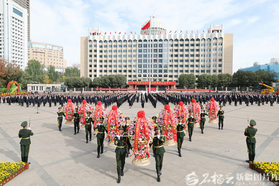 新疆各族各界向人民英雄敬献花篮 陈小江艾尔肯·吐尼亚孜祖木热提·吾布力努尔兰·阿不都满金何忠友张柱陈明国出席 9月30日,烈士纪念日向人民英雄敬献花篮仪式在乌鲁木齐人民广场举行。石榴云/新疆日报记者 崔志坚摄 丰碑永存,精神不朽。9月30日上午,烈士纪念日向人民英雄敬献花篮仪式在乌鲁木齐人民广场举行。陈小江、艾尔肯·吐尼亚孜、祖木热提·吾布力、努尔兰·阿不都满金、何忠友、张柱、陈明国等自治区和兵团领导,同新疆各族各界代表一同向人民英雄敬献花篮,缅怀革命英烈,赓续红色血脉,汲取前行力量,激励广大干部群众在新征程上努力建设社会主义现代化新疆。 乌鲁木齐人民广场庄严肃穆,中国人民解放军进军新疆纪念碑巍然矗立。纪念碑正前方,排列着以自治区党委,自治区人大常委会,自治区人民政府,自治区政协,新疆军区,新疆生产建设兵团,各民主党派、自治区工商联和无党派人士,乌鲁木齐市各族各界群众,少先队员名义敬献的9个花篮。各族各界代表整齐列队,向人民英雄致以崇高敬意。 11时,烈士纪念日向人民英雄敬献花篮仪式开始。雄壮的《义勇军进行曲》奏响,全场高唱中华人民共和国国歌。 国歌唱毕,全场肃立,向为新疆解放和建设事业英勇献身的烈士,向为维护国家安全、社会安定、人民安宁,在反分裂斗争和反恐维稳斗争中英勇献身的烈士默哀。 默哀毕,各族少年儿童高唱《我们是共产主义接班人》,致少年先锋队队礼。 伴着深情的《献花曲》,18名礼兵抬起花篮,迈着整齐的礼步走向纪念碑,将花篮摆放在纪念碑基座上。 随后,陈小江等缓步登上纪念碑基座,仔细整理花篮缎带,深情驻足凝视,追思人民英雄的丰功伟绩和崇高精神。自治区和兵团领导、各族各界代表依次瞻仰纪念碑。 参加仪式的各族干部群众表示,在烈士纪念日这个庄严而神圣的日子里,缅怀革命先辈建立的卓越功勋,回顾党领导人民创立社会主义伟大事业的光辉历程,对自治区成立70年来特别是党的十八大以来发生的翻天覆地变化、取得的举世瞩目成就感受更加深切,进一步增强了坚定不移听党话、矢志不渝跟党走的信心决心。将深入学习贯彻习近平总书记听取自治区党委和政府工作汇报时的重要讲话精神和对自治区成立70周年的重要题词精神,完整准确全面贯彻新时代党的治疆方略,牢牢扭住社会稳定和长治久安总目标,紧紧围绕铸牢中华民族共同体意识主线,感恩奋进,勇毅前行,为建设团结和谐、繁荣富裕、文明进步、安居乐业、生态良好的社会主义现代化新疆而团结奋斗。 田湘利、陈伟俊、王建新、玉苏甫江·麦麦提、伊力扎提·艾合买提江、哈丹·卡宾,自治区人大常委会、政府、政协、兵团班子成员,新疆军区、武警新疆总队主要负责同志,自治区法院、检察院主要负责同志等参加仪式。