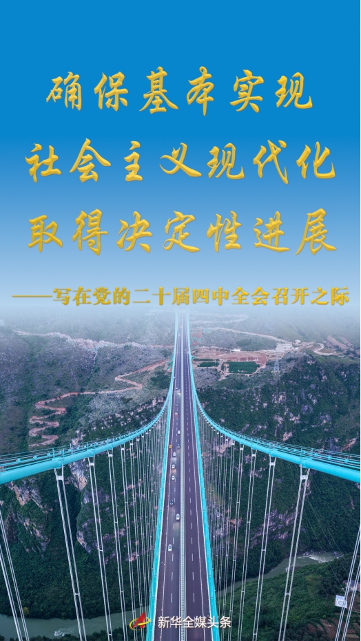 确保基本实现社会主义现代化取得决定性进展——写在党的二十届四中全会召开之际 历史,正在书写新的篇章。 10月20日至23日,党的二十届四中全会在北京召开。会议将审议《中共中央关于制定国民经济和社会发展第十五个五年规划的建议》,为未来五年中国发展擘画蓝图。 2021年—2025年,“十四五”时期是我国全面建成小康社会、实现第一个百年奋斗目标之后,乘势而上开启全面建设社会主义现代化国家新征程、向第二个百年奋斗目标进军的第一个五年。全国上下勠力同心、攻坚克难,我国经济社会发展取得新的开创性进展、突破性变革、历史性成就。 2026年—2030年,围绕以中国式现代化全面推进强国建设、民族复兴伟业,“十五五”时期是基本实现社会主义现代化夯实基础、全面发力的关键时期。 一以贯之的主题,始终不渝的初心,接力奋斗的足迹。 “十五五”新的征程即将开启,以习近平同志为核心的党中央团结带领全党全国各族人民,向着全面建成社会主义现代化强国、实现第二个百年奋斗目标踔厉奋发、勇毅前行,必将确保基本实现社会主义现代化取得决定性进展,开创中国式现代化崭新局面。 领航定向 驾驭发展全局创造新的历史伟业 “十四五”规划收官之际,“两张网”的建设格外引人关注: 一张是国家综合立体交通网,“6轴7廊8通道”主骨架建成率超过90%; 一张是国家水网,2025年底覆盖率预计达到80.3%。 大国之治,江山为基。水网、路网,越千里山川,通四方之利,济万民之需,都是事关现代化建设的大事。 2025年8月19日拍摄的湖南炉慈高速慈利西互通枢纽(无人机照片)。炉慈高速是G59呼和浩特至北海高速公路的一部分,位于常德市石门县及张家界市慈利县境内。这条高速将长江三峡、壶瓶山、张家界等黄金旅游景点串珠成链,构建起湘鄂两省“两小时旅游圈”。新华社记者 陈思汗 摄 2021年,“十四五”开局之年,在带领中国人民向着第一个百年奋斗目标奋力冲刺的同时,习近平总书记的目光已投向第二个百年奋斗目标。 当年5月,河南南阳,总书记专题调研南水北调:“水网建设起来,会是中华民族在治水历程中又一个世纪画卷”;7月,西藏林芝,总书记来到川藏铁路的重要枢纽站林芝火车站,了解川藏铁路总体规划及拉萨至林芝段建设运营情况,要求“建设好这一实现第二个百年奋斗目标进程中的标志性工程”。 2025年4月2日,复兴号列车穿行在拉林铁路林芝段。新华社记者 晋美多吉 摄 “十四五”时期是我国全面建成小康社会之后,乘势而上为实现第二个百年奋斗目标而奋斗的第一个五年,是我国抓住难得机遇、顶住各种挑战、拓展发展新空间的关键时期。 习近平总书记强调:“确保全面建设社会主义现代化国家开好局、起好步。” 五年间,一幅山河锦绣、盛世昌荣的恢弘画卷运笔着墨、徐徐铺展。 这段征程激励奋进步伐:中国经济总量接连跨越110万亿元、120万亿元、130万亿元台阶,预计将于2025年底达到140万亿元左右,4年平均增长5.5%,人均国内生产总值连续两年超过1.3万美元,中国对世界经济增长的年均贡献率保持在30%左右…… 这个时代奔涌创新活力:“十四五”规划确定的102项重大工程进展顺利,中国站上一个又一个“大国重器”创新制高点,研发投入强度提高到2.69%,成为世界上首个国内有效发明专利数量突破400万件的国家…… 这幅图景绘就美丽中国:“增绿”全球最多,森林覆盖率提高到25%以上;地级及以上城市空气质量优良天数比例稳定在87%左右;长江、黄河干流全线达到二类水质标准;新能源发电装机规模历史性超过火电,建成全球最大清洁发电体系…… 这张答卷浸透民生福祉:每年城镇新增就业1200万人以上,人均预期寿命提高到79岁,建成世界上规模最大的教育体系、社会保障体系、医疗卫生体系,城乡区域协调发展进展显著,全体人民共同富裕一步一个脚印向前推进…… 2024年10月2日,广东南沙大桥上的车流和狮子洋水道的船舶来来往往(无人机照片)。新华社记者 刘大伟 摄 五年间,亿万人民砥砺奋进,世界见证新时代中国一个又一个高光时刻: 隆重庆祝中国共产党成立100周年,宣告全面建成小康社会;胜利召开党的二十大,对以中国式现代化全面推进中华民族伟大复兴作出战略部署;召开党的二十届三中全会,谋划进一步全面深化改革;喜庆新中国75周年华诞;隆重纪念中国人民抗日战争暨世界反法西斯战争胜利80周年…… “实现中华民族伟大复兴是前无古人的伟大事业。憧憬和挑战,都激发我们只争朝夕、永不懈怠的奋斗精神。”习近平总书记的话深情而豪迈。 这是以科学理论指引前进道路的五年。 2020年10月29日,党的十九届五中全会审议通过《中共中央关于制定国民经济和社会发展第十四个五年规划和二〇三五年远景目标的建议》。 站在“两个一百年”奋斗目标的历史交汇点,这次全会将“十四五”规划与2035年远景目标统筹考虑,为未来中国经济社会发展勾勒逻辑主线: “‘十四五’时期经济社会发展要以推动高质量发展为主题”“准确把握新发展阶段,深入贯彻新发展理念,加快构建新发展格局”。 2022年10月,党的二十大报告明确提出:“高质量发展是全面建设社会主义现代化国家的首要任务。” 理论和实践的创新突破,激荡在新时代新征程上。 高质量发展需要新的生产力理论来指导。2023年,习近平总书记在地方