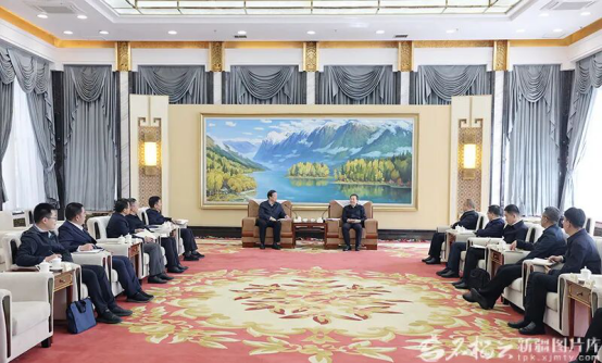 10月16日,自治区党委书记陈小江、自治区主席艾尔肯·吐尼亚孜在乌鲁木齐会见工业和信息化部党组成员,国家烟草专卖局党组书记、局长张建民一行。天山网-新疆日报记者 谢龙摄 自治区党委书记陈小江、自治区主席艾尔肯·吐尼亚孜10月16日在乌鲁木齐会见了工业和信息化部党组成员,国家烟草专卖局党组书记、局长张建民一行。 陈小江代表自治区党委和政府欢迎张建民一行来疆考察调研,向国家烟草专卖局长期以来对新疆经济社会发展的大力支持表示感谢。他说,在党中央亲切关怀下,自治区成立70周年庆祝活动成功举办。习近平总书记率中央代表团出席活动,对建设团结和谐、繁荣富裕、文明进步、安居乐业、生态良好的社会主义现代化新疆作出战略擘画,为做好新时代新疆工作注入了强大动力、指明了前进方向。当前,全区上下正全面学习宣传贯彻习近平总书记听取自治区党委和政府工作汇报时的重要讲话精神,牢记嘱托、感恩奋进,锚定党中央赋予的“五大战略定位”,探索符合自身特点的高质量发展路子,奋力谱写中国式现代化新疆篇章。希望国家烟草专卖局一如既往关心支持新疆工作,助力新疆经济社会高质量发展。 张建民对自治区成立70年来特别是党的十八大以来取得的举世瞩目成就给予高度评价,介绍了全国烟草行业发展情况,表示国家烟草专卖局将继续为新疆烟草事业发展提供支持和指导,积极践行社会责任,为新疆经济社会发展作出新的贡献。 陈伟俊和自治区有关单位负责同志参加会见。