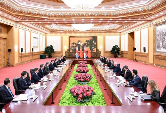 1月29日上午,国家主席习近平在北京人民大会堂会见来华进行正式访问的英国首相斯塔默。新华社记者李响摄 1月29日上午,国家主席习近平在北京人民大会堂会见来华进行正式访问的英国首相斯塔默。双方同意中英要发展长期稳定的全面战略伙伴关系。 习近平指出,当前国际局势变乱交织,中英作为联合国安理会常任理事国和世界主要经济体,无论是维护世界和平稳定,还是促进两国经济民生,都需要加强对话和合作。中方愿同英方秉持大历史观,超越分歧、相互尊重,把中英合作“大有可为”的潜力转化成“大有作为”的实绩,为中英关系与合作开新局,既造福两国人民,也惠及世界。 习近平强调,互信是国与国关系行稳致远的基础。中国始终坚持走和平发展道路,从未主动挑起过一场战争,从未侵占过别国一寸土地,中国无论怎样发展壮大都不会对其他国家构成威胁。中国的文化传统是“以和为贵”,追求的是“和而不同”。中英经贸合作的本质是互利共赢。今年是中国“十五五”开局之年,双方要拓展教育、医疗、金融、服务业互利合作,开展人工智能、生物科学、新能源和低碳技术等领域联合研究和产业转化,实现共同发展繁荣。希望英方为中国企业提供公平、公正、非歧视的营商环境。中英都是文化大国,都为人类发展进步作出重要贡献。双方要密切人文交流,进一步便利人员往来。欢迎英国政府、议会、地方各界多来中国参访,增加对中国全面、客观、正确的认知。中方愿积极考虑对英实施单方面免签。 习近平指出,一段时间以来,单边主义、保护主义、强权政治甚嚣尘上,国际秩序受到严重冲击。国际法只有在各国都遵守时才真正有效,大国尤其要带头,否则就会退回丛林世界。中英都支持多边主义和自由贸易,应共同倡导和践行真正的多边主义,推动构建更加公正合理的全球治理体系,实现平等有序的多极化和普惠包容的全球化。 1月29日上午,国家主席习近平在北京人民大会堂会见来华进行正式访问的英国首相斯塔默。新华社记者申宏摄 斯塔默转达查尔斯三世国王对习近平主席的问候。斯塔默表示,很高兴成为8年来首位访华的英国首相。此次我率60多位英国重要工商、文化界代表访华,足以展现英中合作的广度和英方致力于深化扩大对华合作的决心。英中是世界重要经济体和联合国安理会常任理事国,在当前动荡脆弱的国际形势下,英方本着相互尊重、相互信任精神同中方建立长期稳定的全面战略伙伴关系至关重要。英方在台湾问题上长期奉行的政策没有改变,也不会改变。英方愿与中方保持高层交往,密切对话交流,加强贸易、投资、金融、环保等各领域合作,助力彼此经济增长,为两国人民带来福祉。人民交往越密切,越有利于增进了解,英方愿同中方共同推动两国立法机构等各界加强交往。香港繁荣稳定符合两国共同利益,英方乐见香港成为英中之间的独特重要桥梁。中国在国际事务中发挥着关键作用,英方愿同中方就应对气候变化等全球性挑战加强合作,共同维护世界和平稳定。 王毅参加会见。