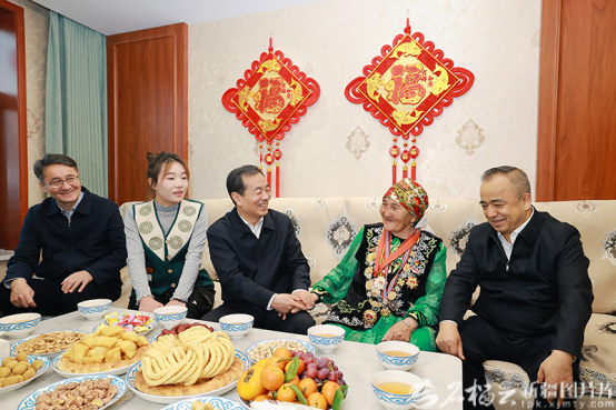 陈小江艾尔肯·吐尼亚孜在喀什克州看望慰问基层干部群众 全力以赴做好保稳定促发展惠民生各项工作 祝全疆各族人民新春快乐幸福安康 2月13日,自治区党委书记陈小江、自治区主席艾尔肯·吐尼亚孜在喀什徕宁国际机场,亲切看望春运一线职工。 新春佳节即将到来之际,自治区党委书记陈小江、自治区主席艾尔肯·吐尼亚孜2月13日至14日来到喀什地区和克孜勒苏柯尔克孜自治州,深入基层一线调研春运组织、安全稳定、民生保障各项工作,看望慰问各族干部群众,代表自治区党委和政府祝全疆各族人民新春快乐、幸福安康。 正值春运出行高峰,陈小江、艾尔肯·吐尼亚孜抵达喀什徕宁国际机场后,实地察看了群众出行情况,到管控中心听取春运组织和服务保障工作介绍。陈小江亲切看望各族职工,向大家祝贺新春。他说,春运一线职工用辛勤工作换来群众安全便捷出行,大家辛苦了。要加强运力统筹调度,努力提供温馨周到服务,切实加强安全管理,确保各族群众顺利出行、平安回家。 2月13日,自治区党委书记陈小江、自治区主席艾尔肯·吐尼亚孜在塔里木油田喀什油气储运中心,详细了解节日期间能源保障工作。 天然气保供关系千家万户冷暖。陈小江、艾尔肯·吐尼亚孜来到塔里木油田喀什油气储运中心,详细了解节日期间能源保障工作。陈小江强调,要深入推进南疆天然气利民工程,全力管护好能源动脉,提升天然气安全稳定供应能力,让各族群众温暖过年。 2月13日,自治区党委书记陈小江、自治区主席艾尔肯·吐尼亚孜在疏附县疆南农副产品批发市场年货摊位,与各族群众亲切交流。 疏附县疆南农副产品批发市场里正举办年货大集,各类特色商品琳琅满目,写春联、送福字活动备受欢迎,现场洋溢着浓浓的年味儿。陈小江、艾尔肯·吐尼亚孜饶有兴致地察看年货摊位,了解蔬菜等农副产品供应情况。陈小江叮嘱有关负责同志,加强货源组织和产销对接,丰富节日市场供给,全力保障民生商品供应充足、价格稳定、质量放心。 来到疏附县阿亚格曼干村,陈小江、艾尔肯·吐尼亚孜亲切看望了驻村工作队,了解党建引领、民族团结、产业富民等工作情况,勉励大家在强基固本、强村富民、乡村善治上持续用力,带领各族群众铸牢中华民族共同体意识、过上更加幸福美好生活。 2月13日,自治区党委书记陈小江、自治区主席艾尔肯·吐尼亚孜在武警新疆总队南疆某部,看望慰问部队官兵。 调研期间,陈小江、艾尔肯·吐尼亚孜来到武警新疆总队南疆某部、乌恰边境管理大队和喀什市新怡发便民警务站,看望慰问部队官兵和基层民警,深入了解节日期间稳定工作情况,勉励大家落实落细各项工作措施,增强应急处突本领,有效防范化解风险隐患,切实维护社会稳定、确保边境安全、守护万家团圆。 2月14日,自治区党委书记陈小江、自治区主席艾尔肯·吐尼亚孜专程来到乌恰县看望“人民楷模”布茹玛汗·毛勒朵。 陈小江、艾尔肯·吐尼亚孜专程到乌恰县看望了“人民楷模”布茹玛汗·毛勒朵,祝愿她身体健康、生活幸福,叮嘱有关负责同志关心爱护英雄模范,引导全社会崇德向善、见贤思齐;来到阿图什市中心敬老院,为各族老年人送上新春祝福,要求各级党委和政府切实尊老敬老爱老助老,推动养老服务扩容提质,努力让老年人安享幸福晚年。 2月14日,自治区党委书记陈小江、自治区主席艾尔肯·吐尼亚孜在阿图什市中心敬老院,为各族老年人送上新春祝福。 陈小江在调研中强调,各地各部门要深入践行以人民为中心的发展思想,更好统筹发展和安全,深入细致做好保稳定、促发展、惠民生各项工作。要全力维护社会和谐稳定,深入推进反恐维稳法治化常态化,强化社会面巡防管控,深入排查化解各类矛盾纠纷,营造安定和谐有序的社会环境。要加大保障和改善民生力度,扎实做好煤电油气运保障供应和重要民生商品保供稳价,精心做好春运组织调度工作,加强困难群众关心关爱力度,用心用情解决好各族群众急难愁盼问题,不断增进民生福祉。要保持经济平稳健康发展,抓好经济运行调度,加强重点项目统筹谋划和在建项目服务保障,促进投资平稳增长,多措并举激发节日期间城乡消费活力,助力全年开好局起好步。要牢牢守住安全生产底线,加强交通运输、烟花爆竹、文化旅游、特种设备和煤田矿山、危化品、园区企业等重点行业领域安全监管,落实极端灾害天气防范应对和救援处置措施,做好假日期间值班值守工作,坚决防范发生各类安全事故,确保各族群众过一个欢乐平安祥和的春节。 哈丹·卡宾、聂壮参加调研慰问。